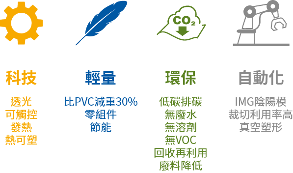 輕量,較PVC減重40%